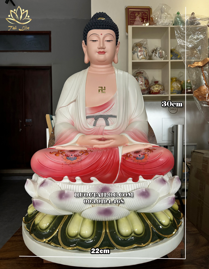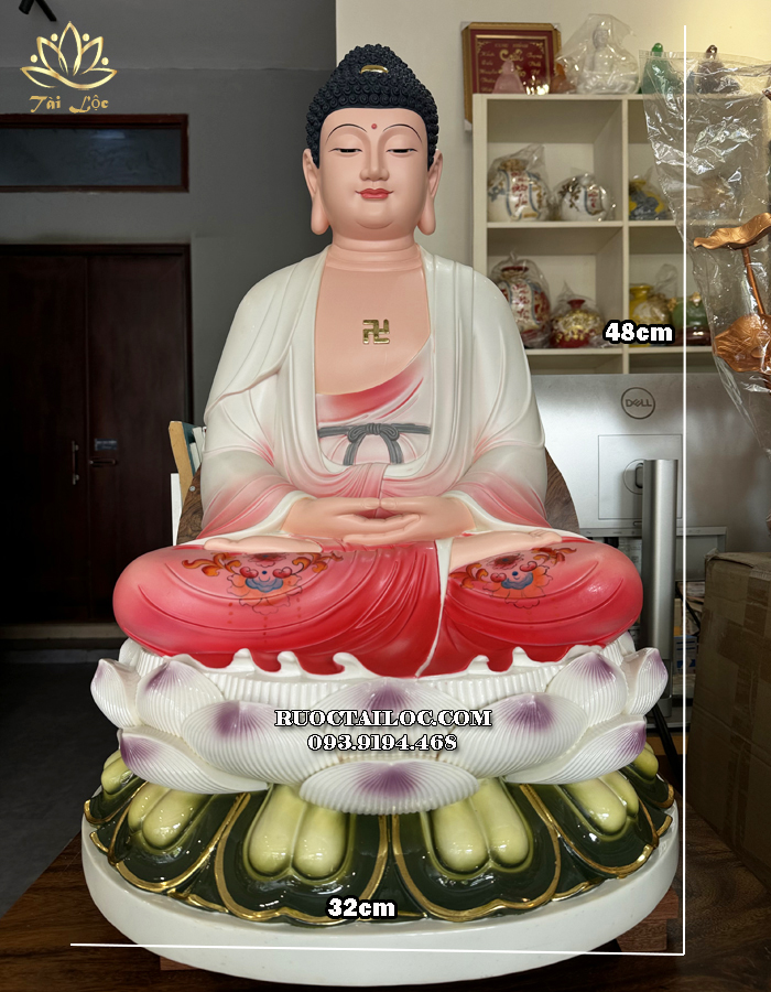 Tượng Phật Dược Sư Poly Áo Đỏ Ngồi Đế Sen DS-028