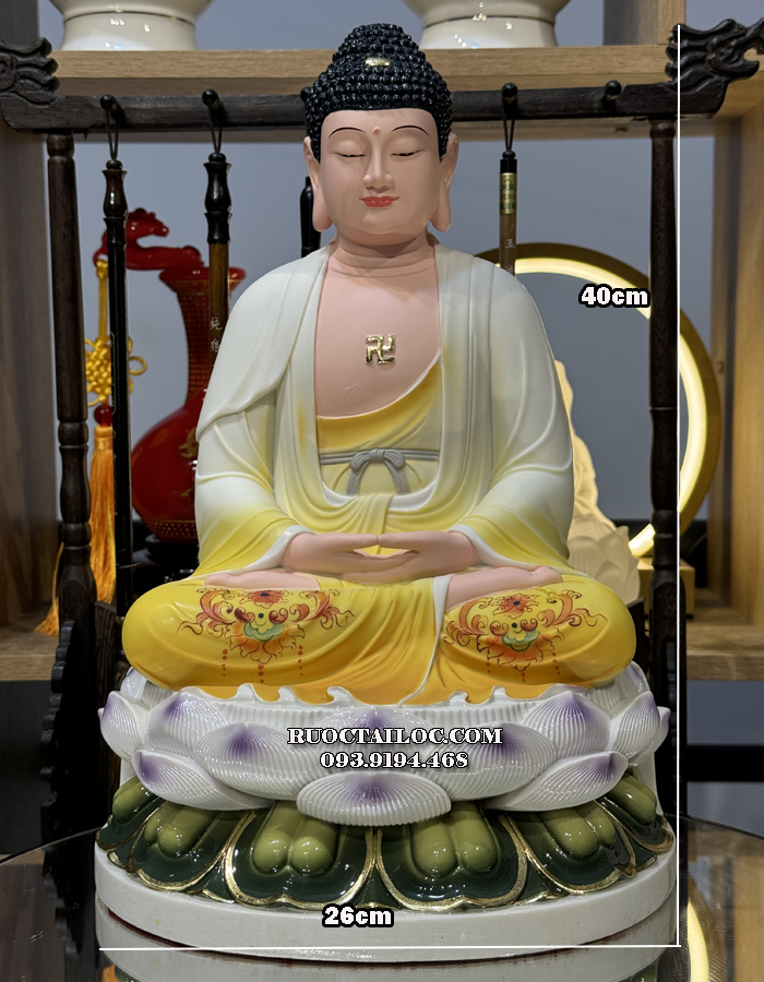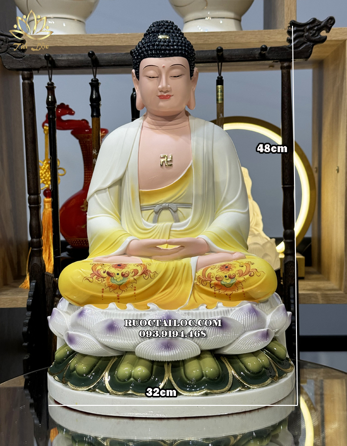Tượng Phật Dược Sư Ngồi Áo Vàng Poly Đế Sen DS-029